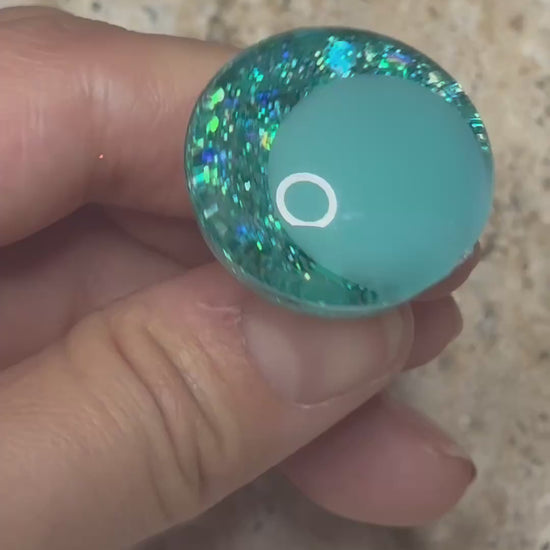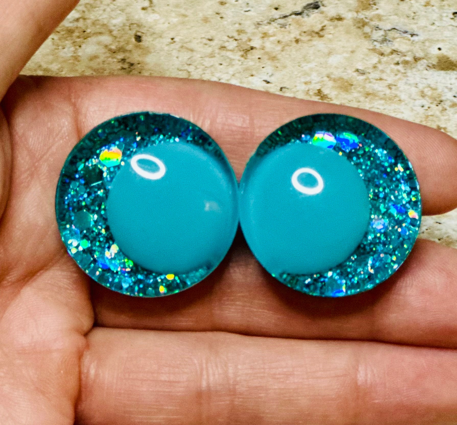 Transform your Miku and Sakura Miku crochet creations with these stunning handpainted safety eyes. Each set features kawaii offset design with emerald and pink pupils, accented by shimmering pink and teal glitter for eye-catching detail. The sinker eyes ensure a secure, flush connection that sits perfectly flush with your plushie surface. Specifically crafted for That Nerdy Hooker's crochet pattern, these safety eyes deliver the professional finish your handmade projects deserve. Bring your amigurumi to life with character and charm.